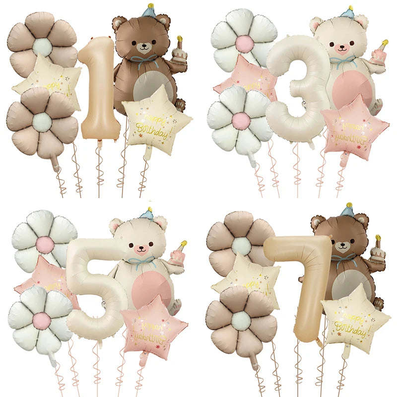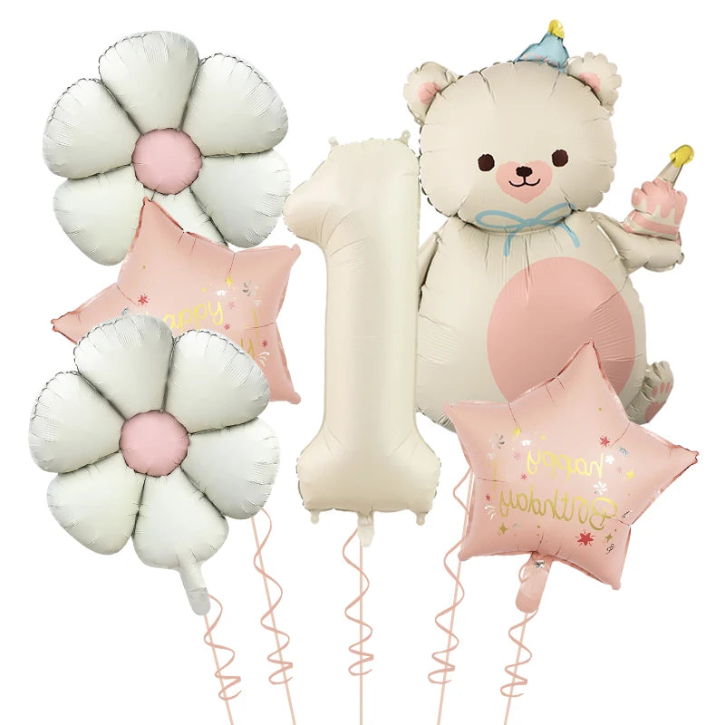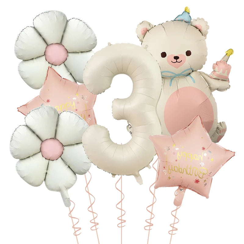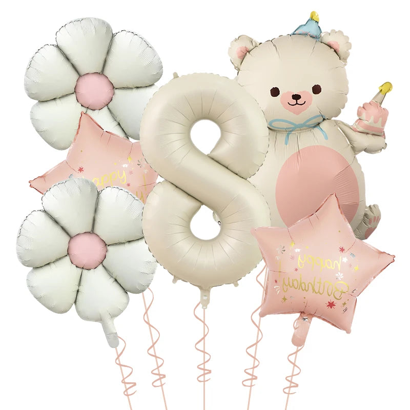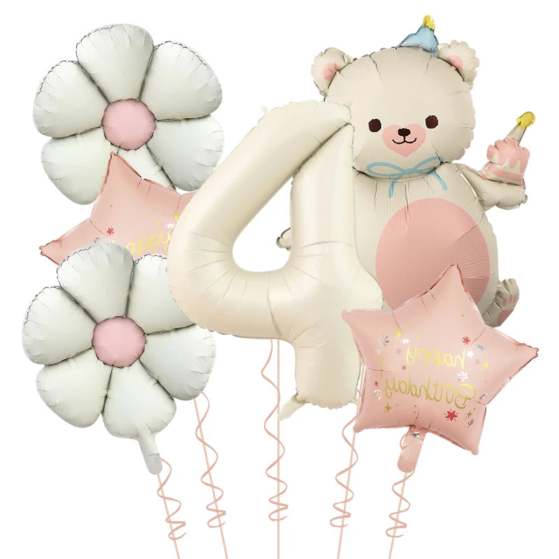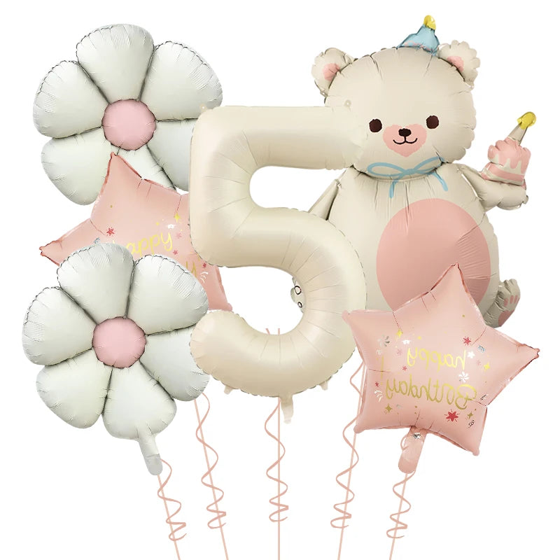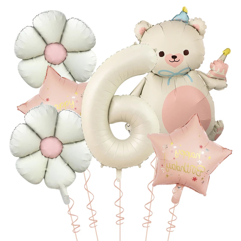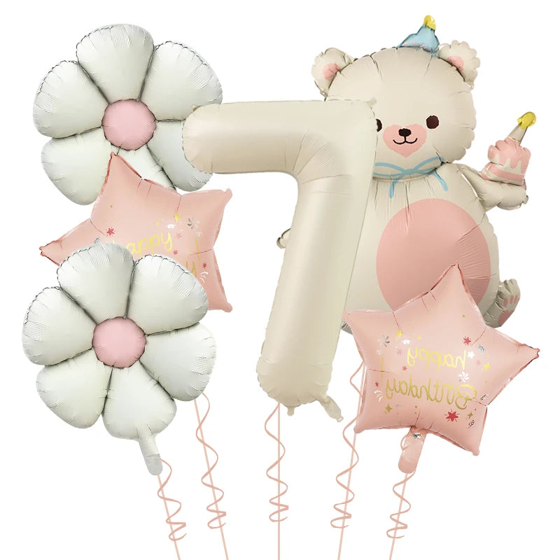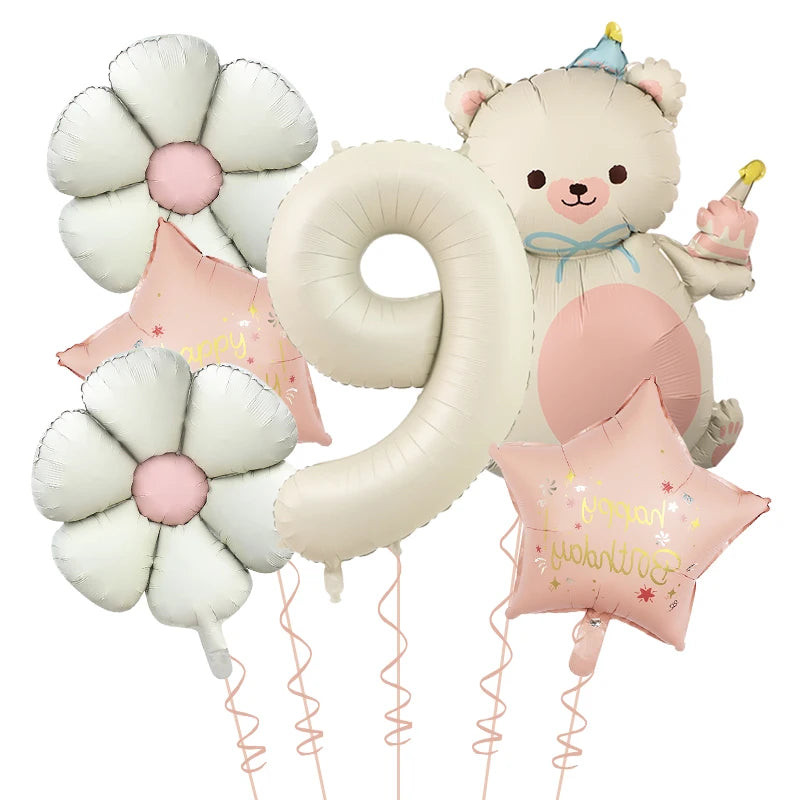 Kidslands® | Daisy-Zahlen- und Teddybär-Ballon-Set – 6-teilig | Geburtstags- und Babyparty-Dekorationen