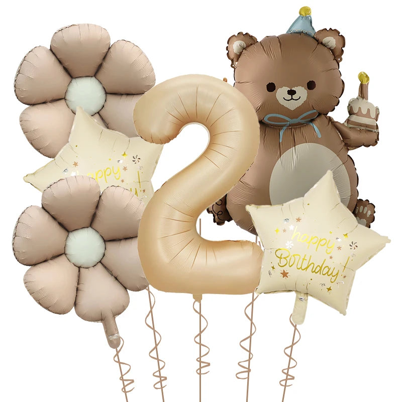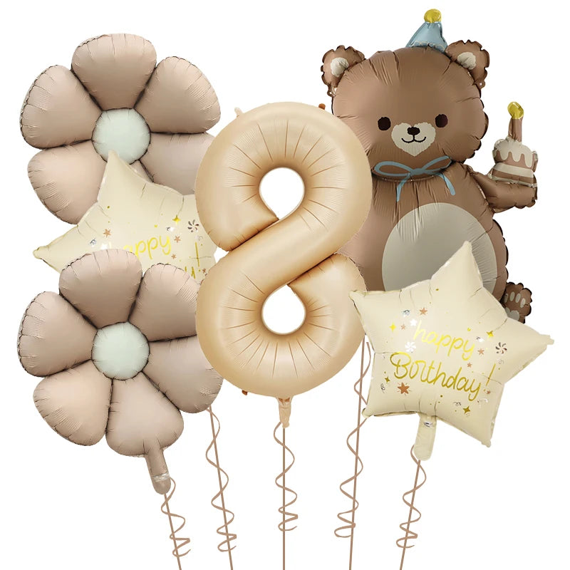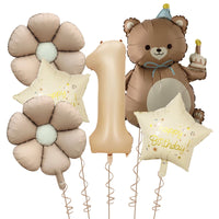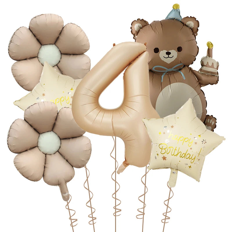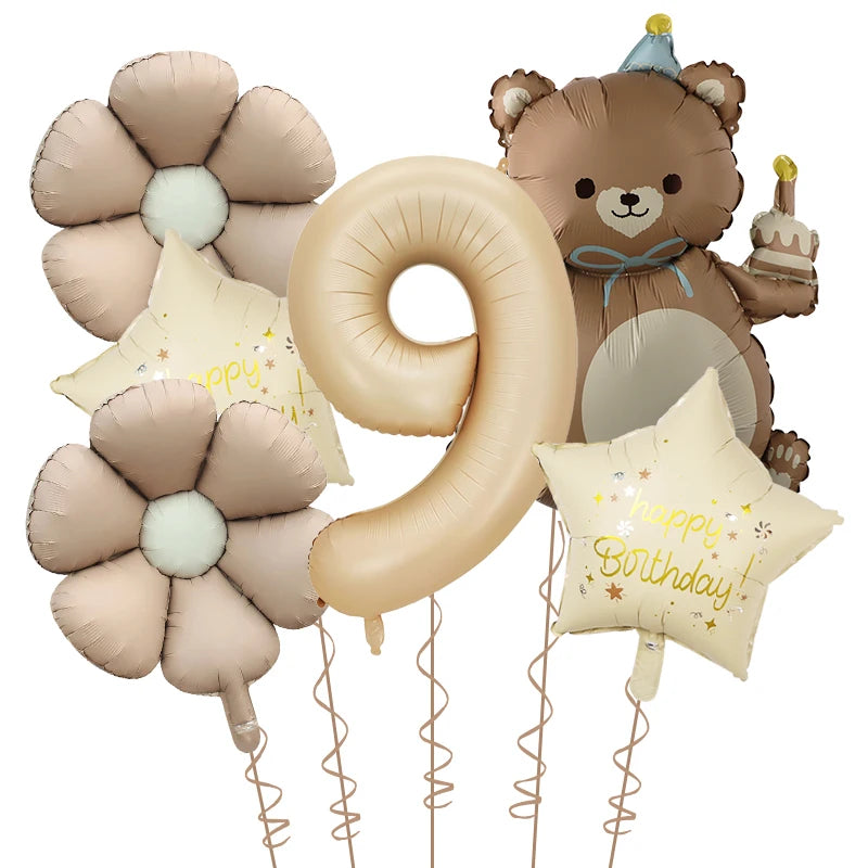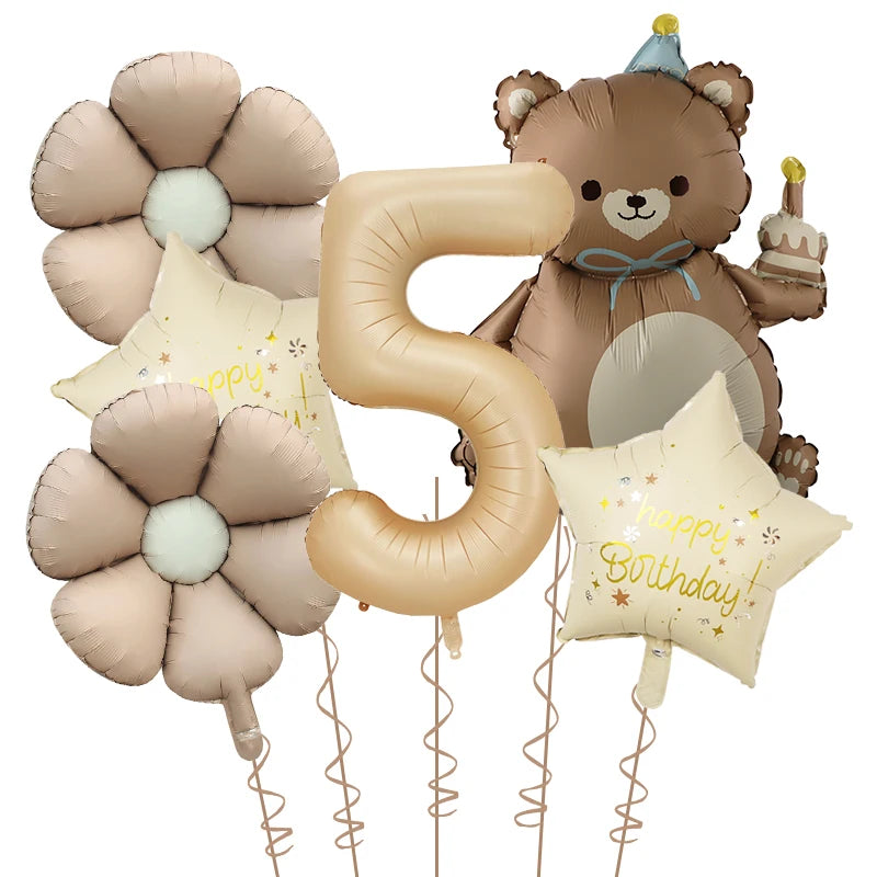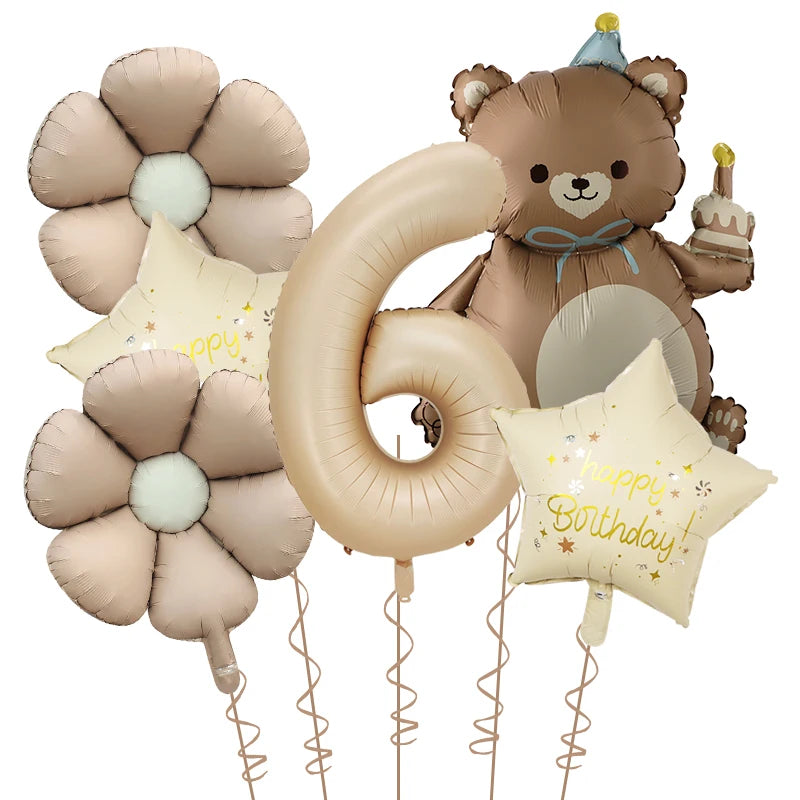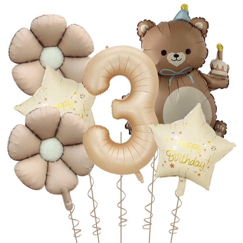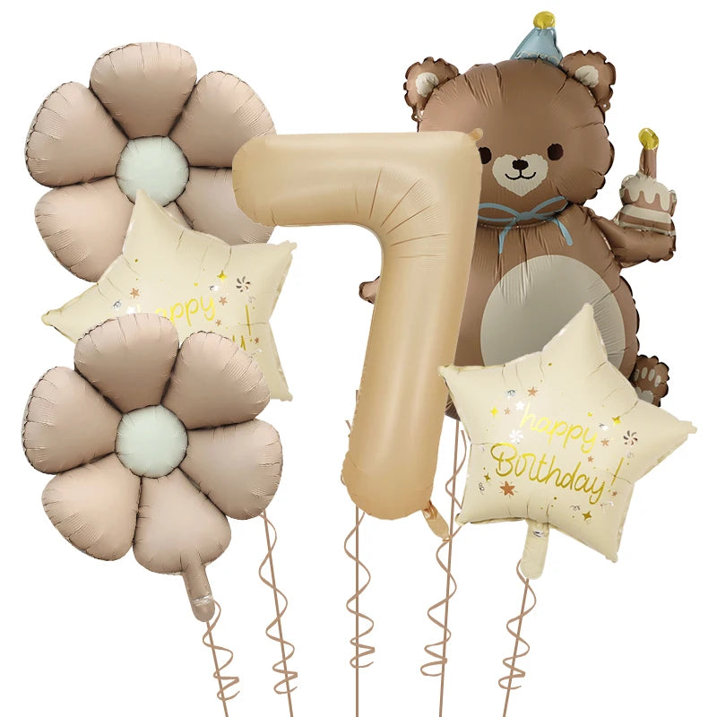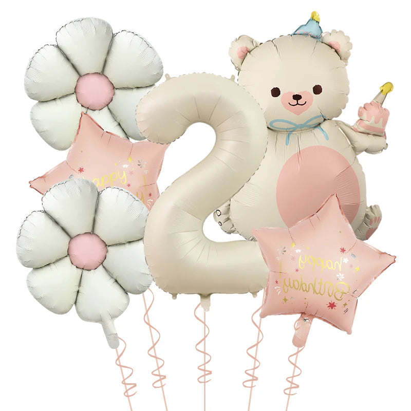 Kidslands® | Daisy-Zahlen- und Teddybär-Ballon-Set – 6-teilig | Geburtstags- und Babyparty-Dekorationen