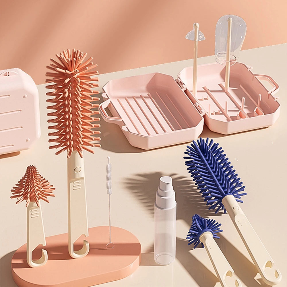 Kidslands® | Kit de Nettoyage Biberon avec Brosses en Silicone pour Voyage, Déplacement – Accessoires Bébé