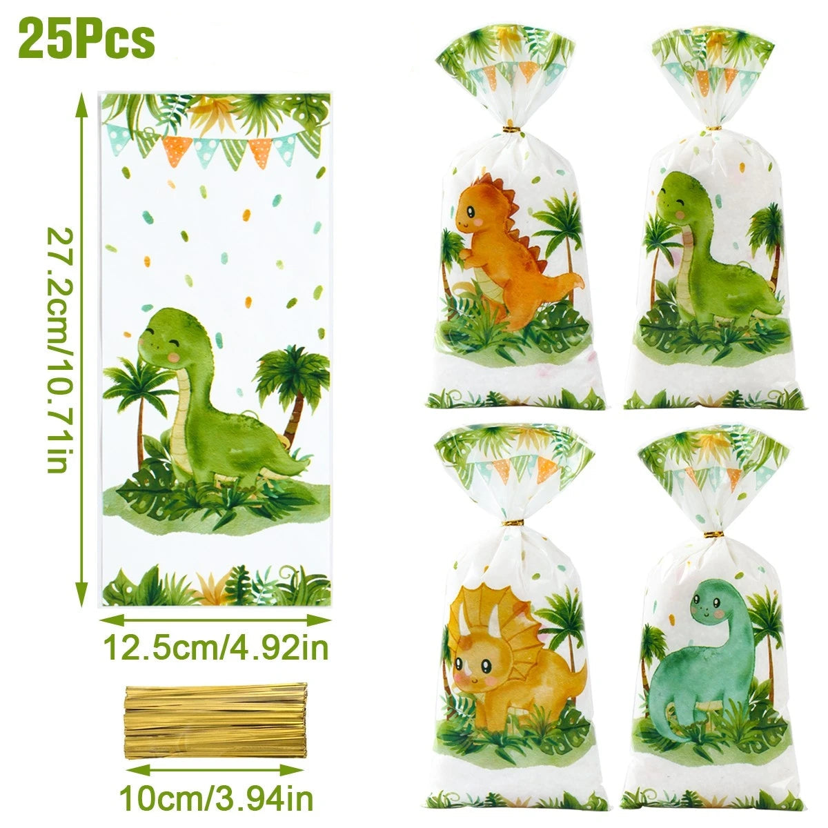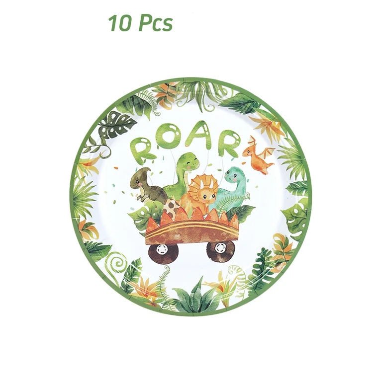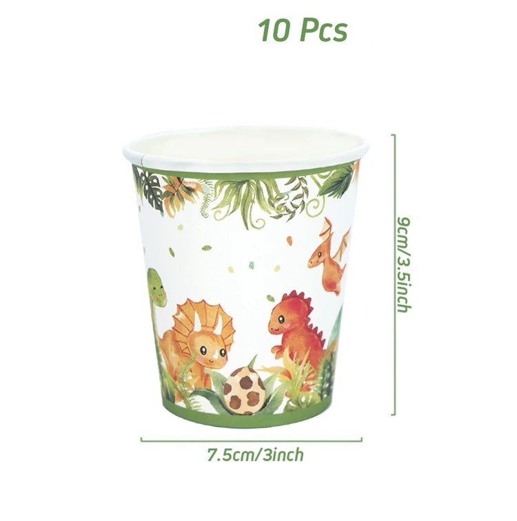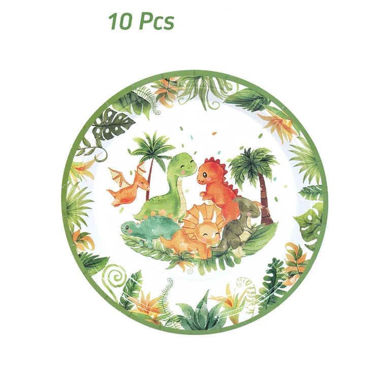 * Lot d'assiettes - Gobelets - serviettes en papier - caissettes cupcakes - sacs de bonbons transparents assorties au thème Dinosaures