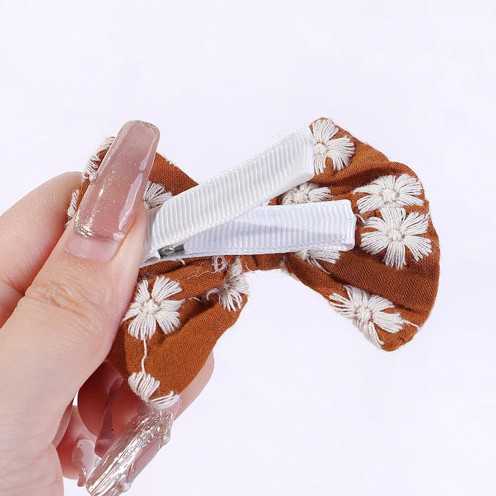 * lot de 10 pinces à cheveux avec nœuds en coton brodé