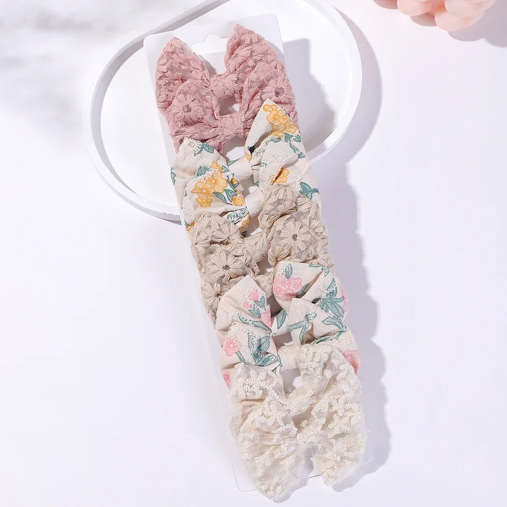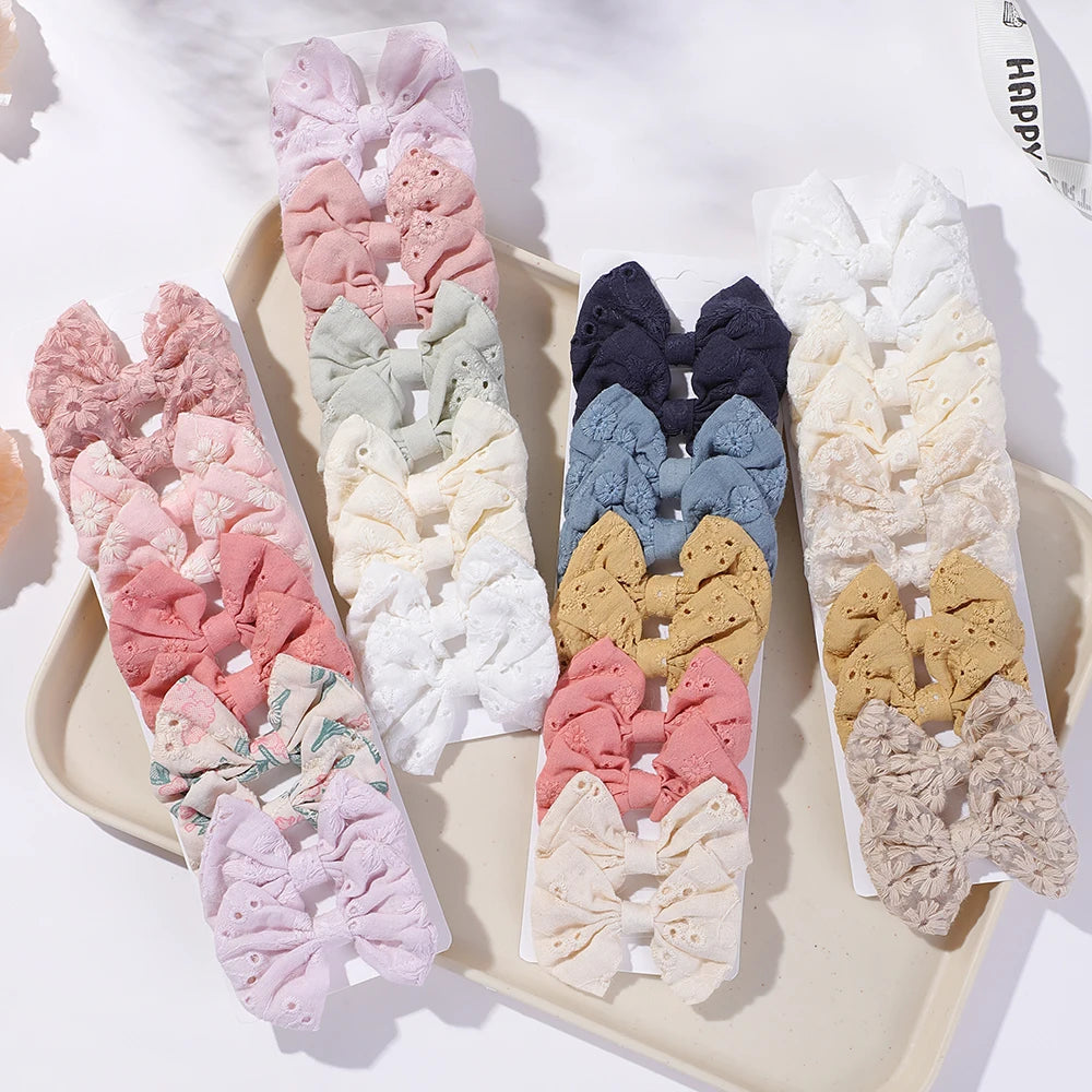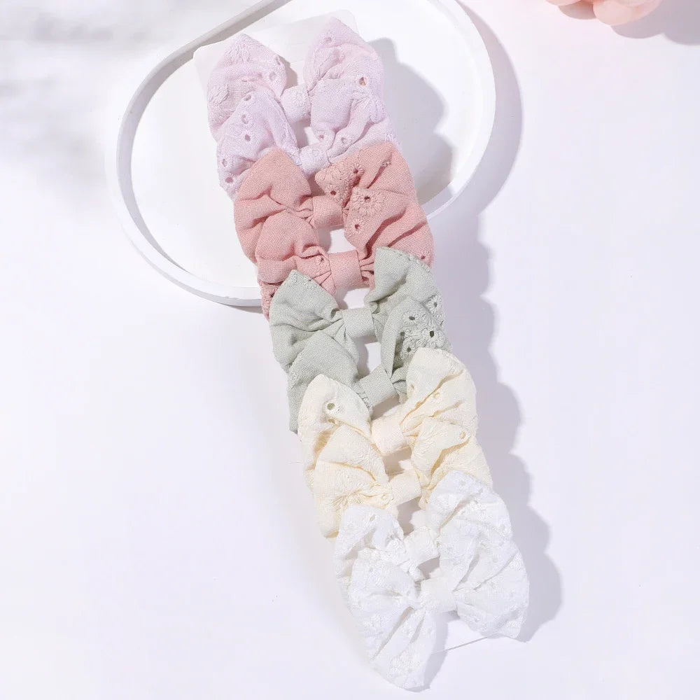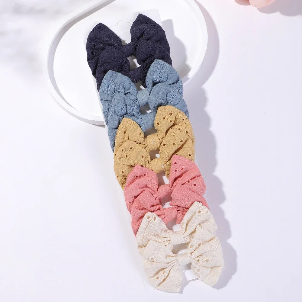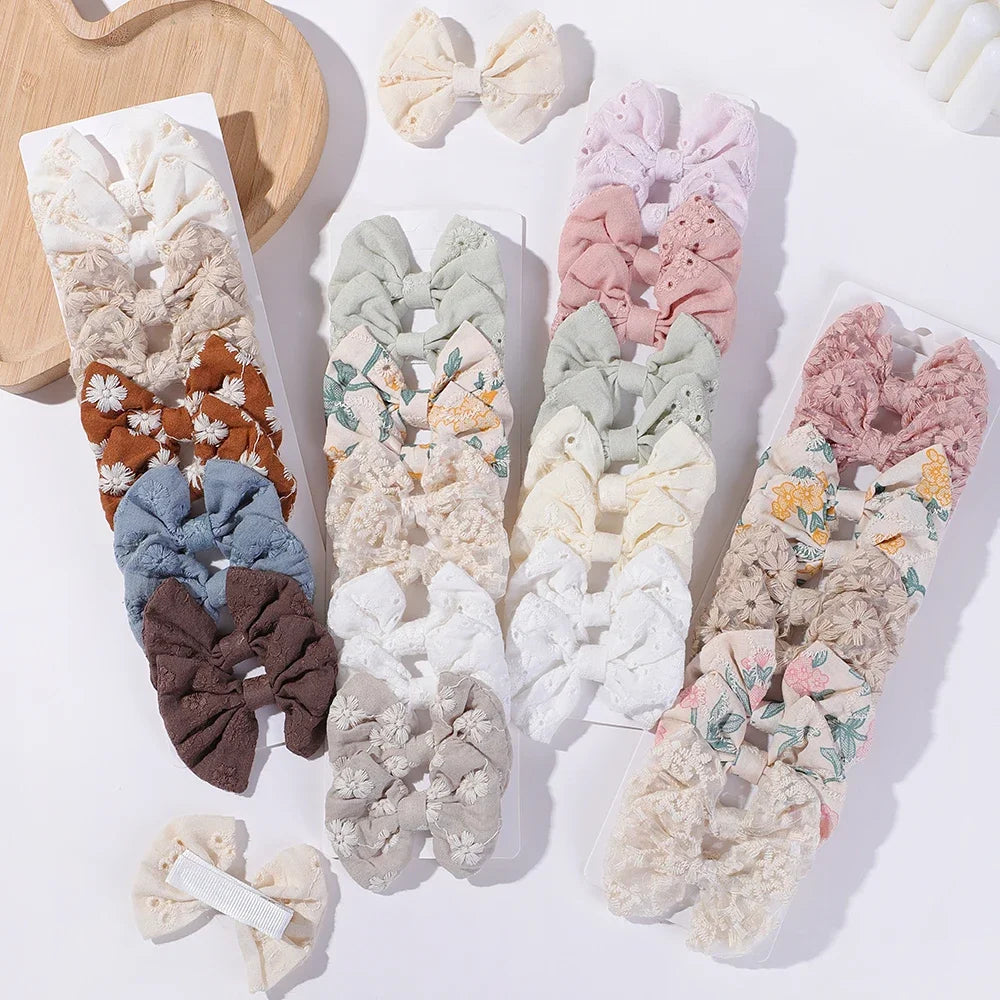 Kidslands® | Lot de 10 Barrettes Nœuds – Pinces à Cheveux Coton Brodé Doux & Élégant