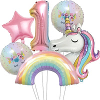 Lot de 6 : Ballon Chiffre : 80cm - Licorne : 103x78cm - Arc-en-ciel : 82x53.5cm - Etoile et 2 ballons Ronds : 45 cm