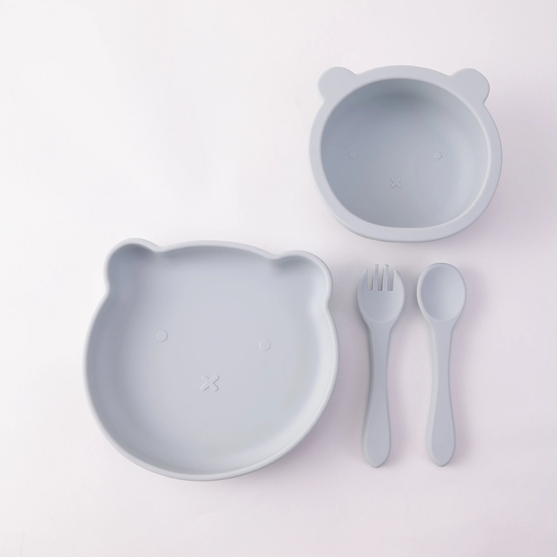 Kidslands® | 4-teiliges Baby-Mahlzeitenset aus Silikon – Schüssel, Teller, Löffel und Gabel mit Saugnapf