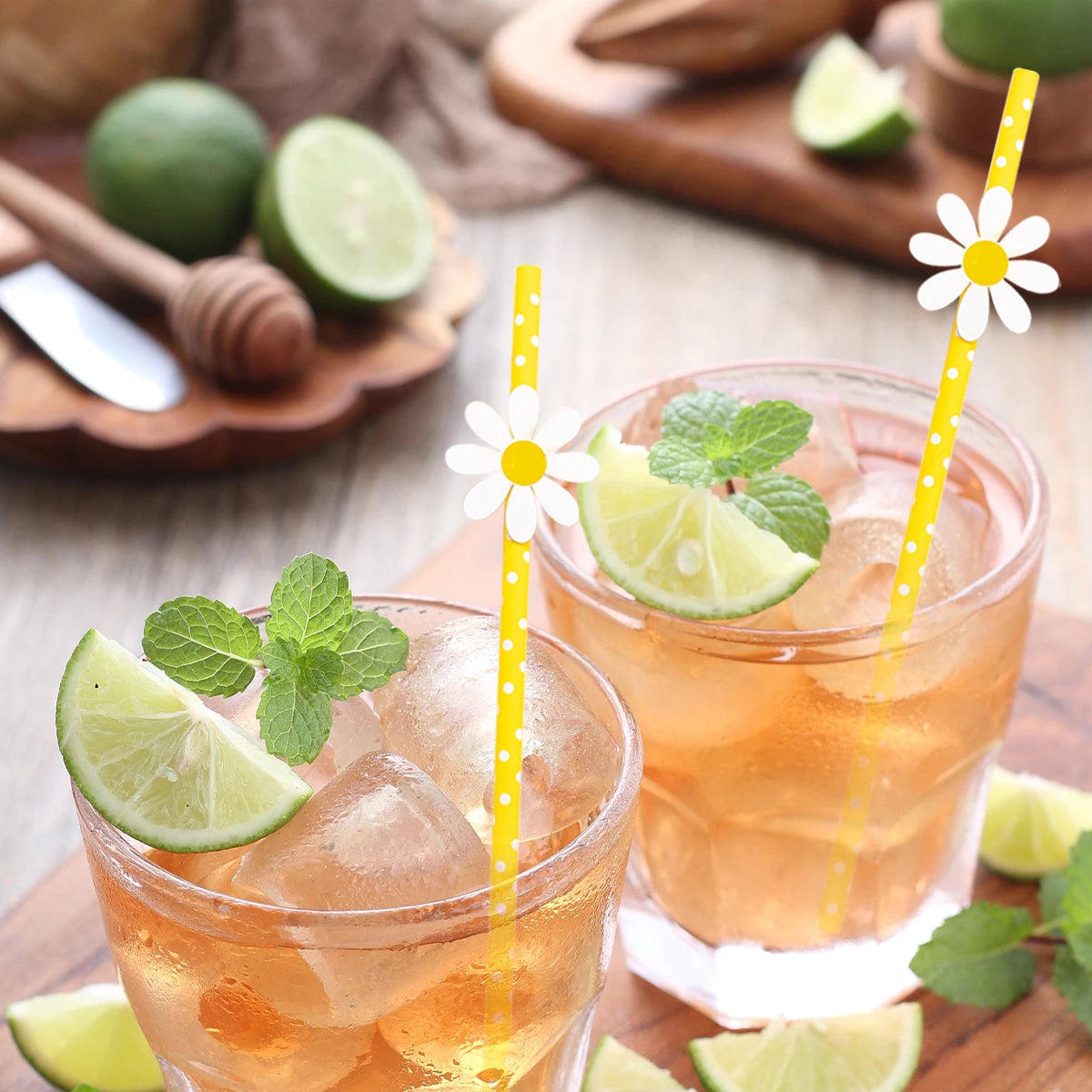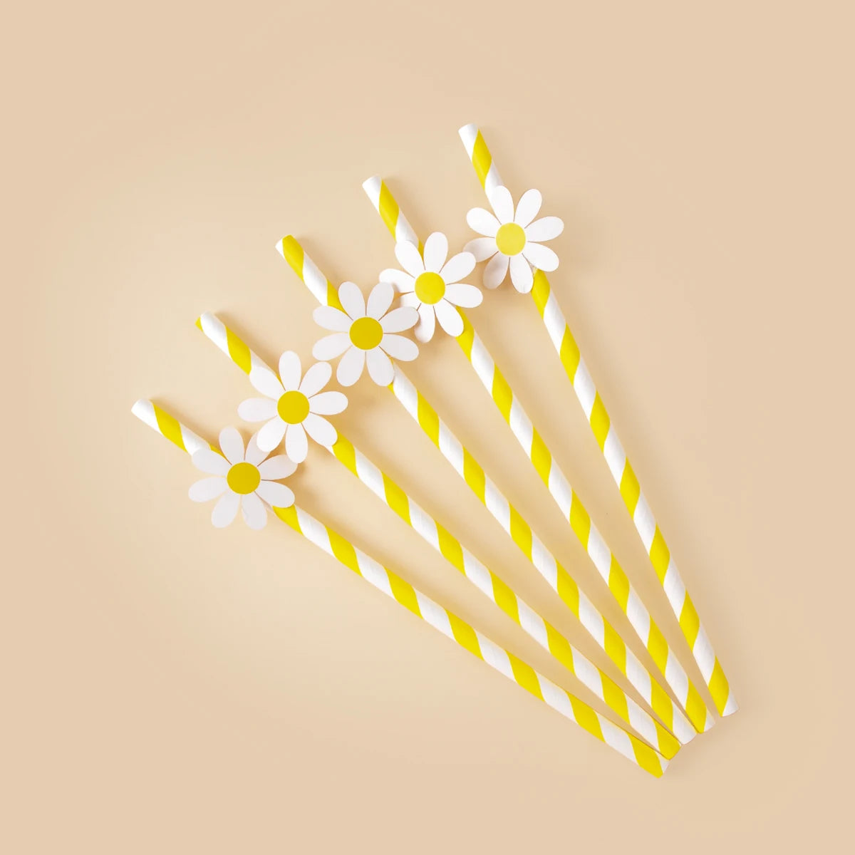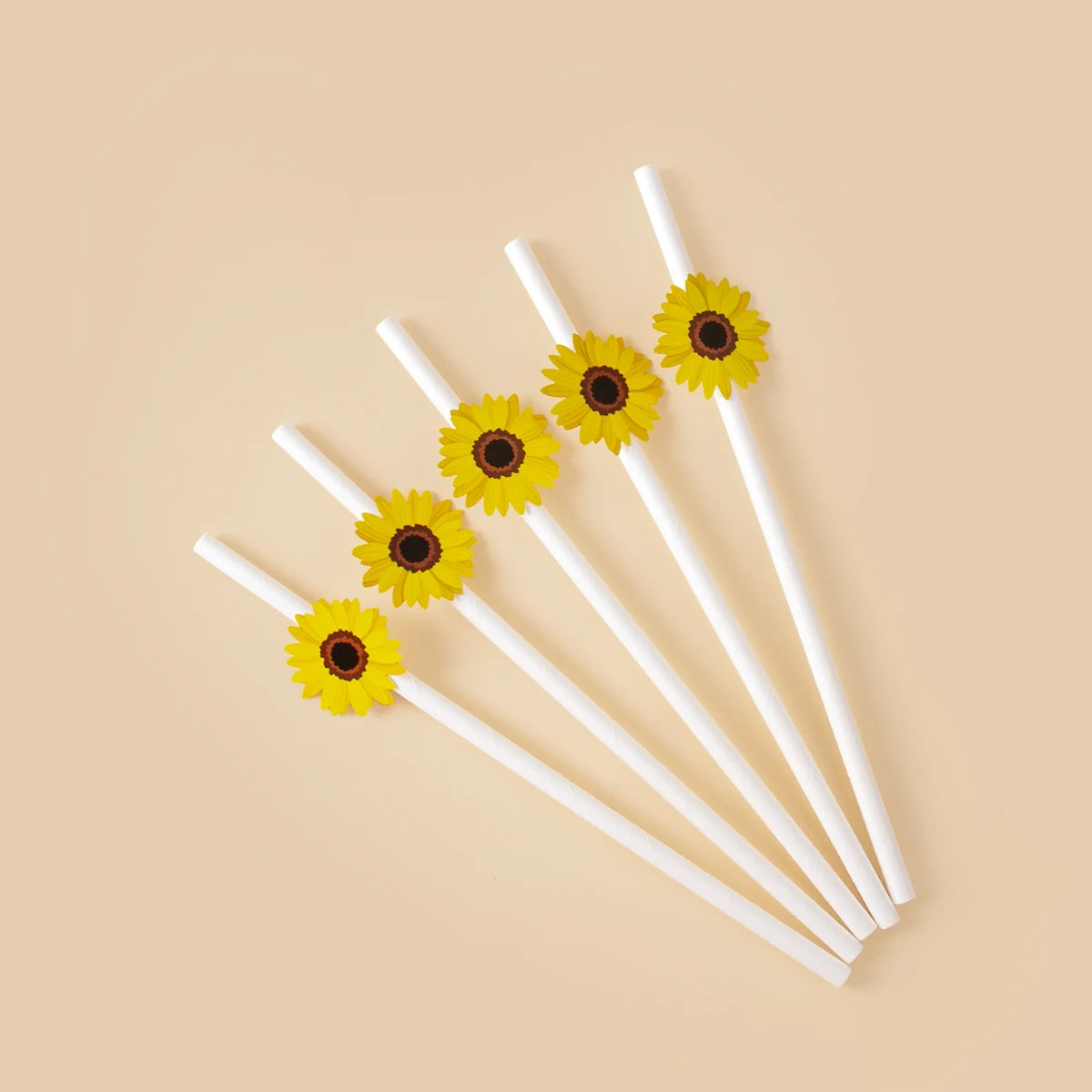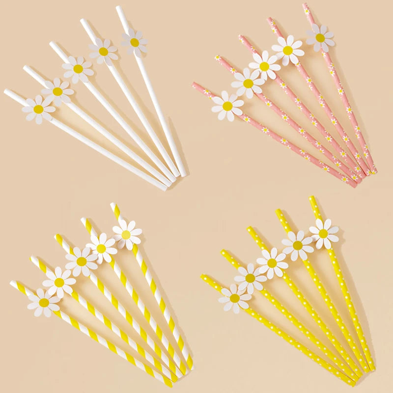 Kidslands® - Pailles en Papier Fleurs, Marguerites, Tournesol – Lot de 10/20/30 pour Anniversaire & Baby Shower