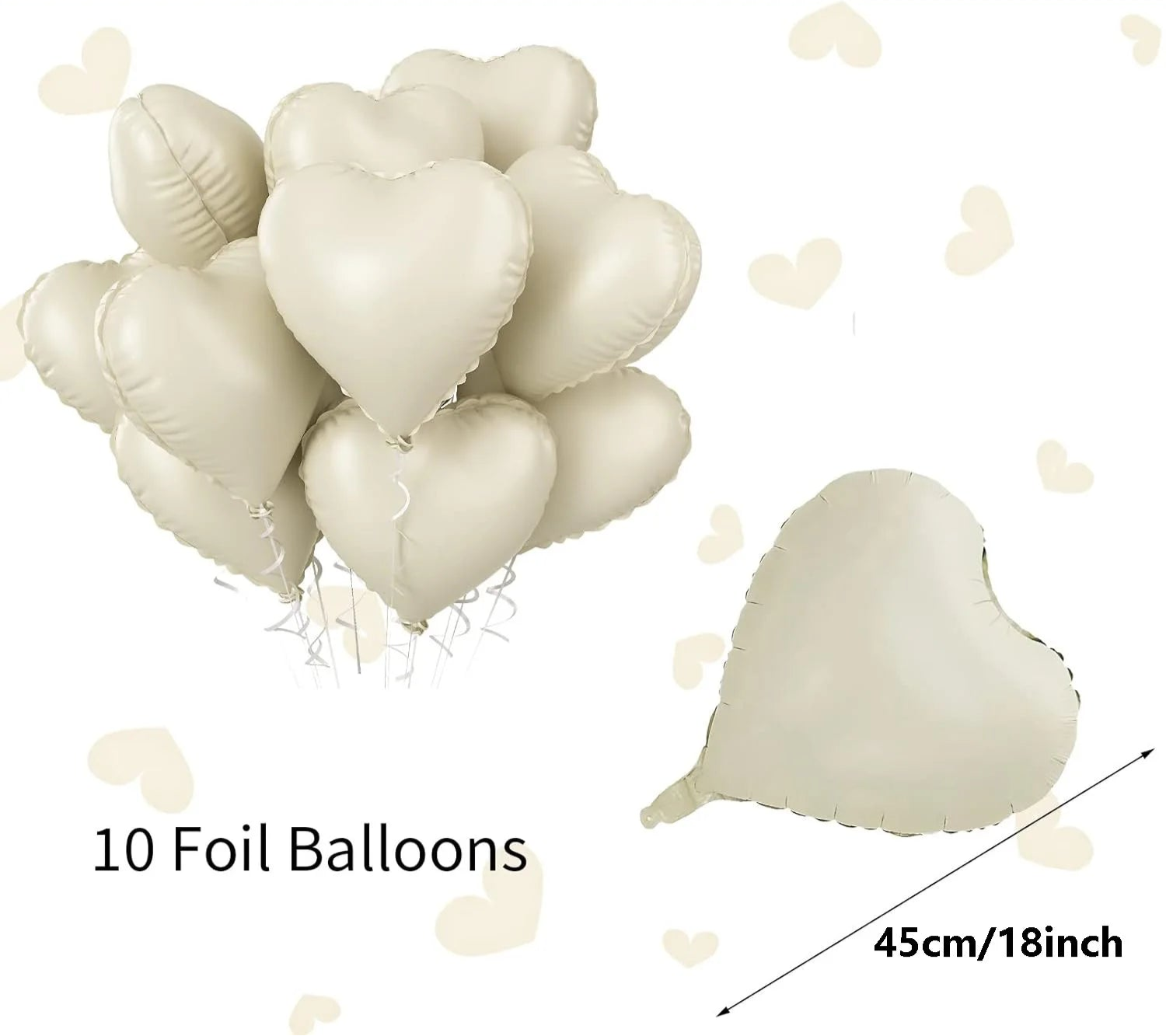 Add a touch of sweetness to your celebrations with this set of 10 Kidslands® heart-shaped balloons , in a refined matte cream color . Their romantic and minimalist design fits perfectly with bohemian, neutral or upscale decor for a baby shower, birthday, wedding or photoshoot.
