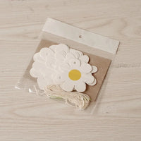 Matière : Papier cartonné avec ficelle blanche. Taille : 5m. Design bohème chic avec marguerites blanches et jaunes.
