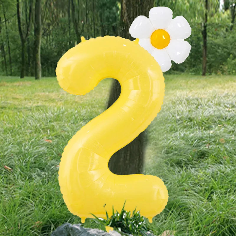 Kidslands® - Lot 2 Ballons Marguerite + Chiffre 100cm – Décoration Anniversaire Enfant, Baby Shower, Fête Florale