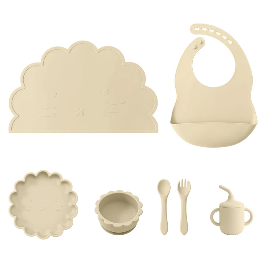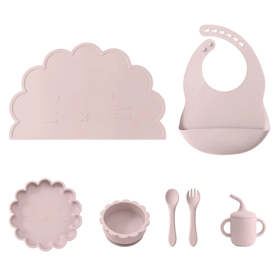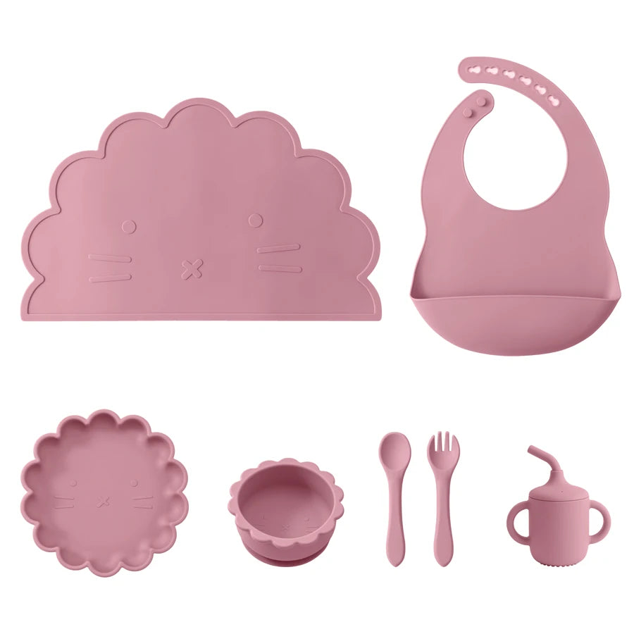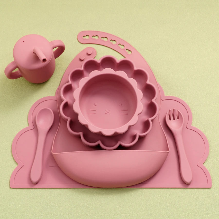 Kidslands® - 7-Piece Silicone Baby Meal Set - BPA Free - Placemat, Bowl, Plate, Spoon, Fork, Cup & Adjustable Bib