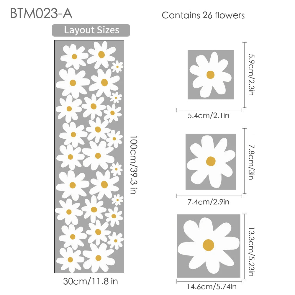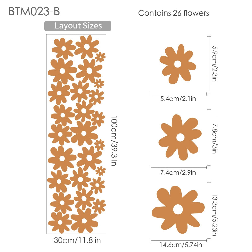 Kidslands® | 26 Bohemian Daisy Flower Wall Stickers White & Brown – Baby Kids Room Decor