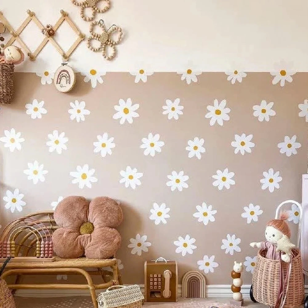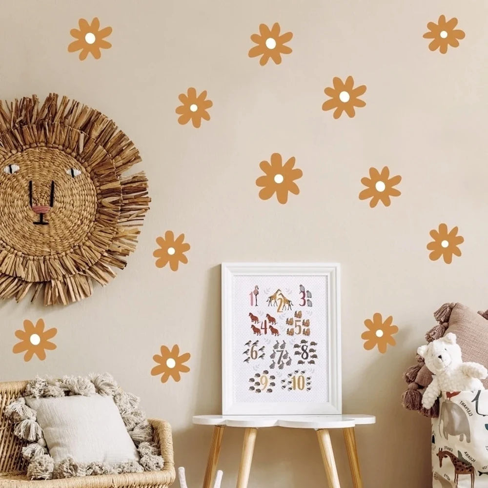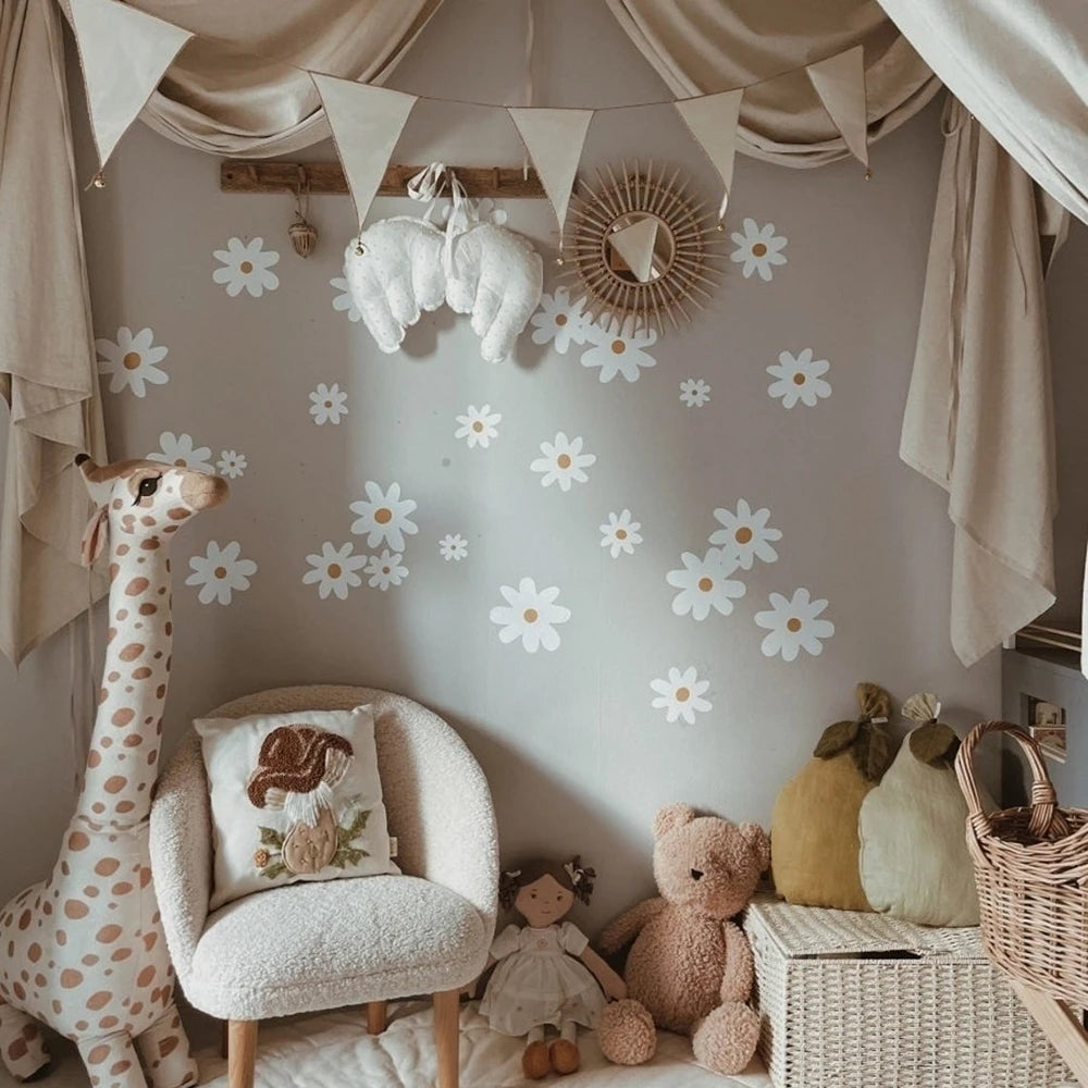 Add a soft, floral touch to your child's room with these beautiful bohemian-style Kidslands® daisy wall stickers . Perfect for creating a warm, poetic and trendy atmosphere in a baby or little girl's room. Easy to apply and remove without leaving any residue . Non-toxic .