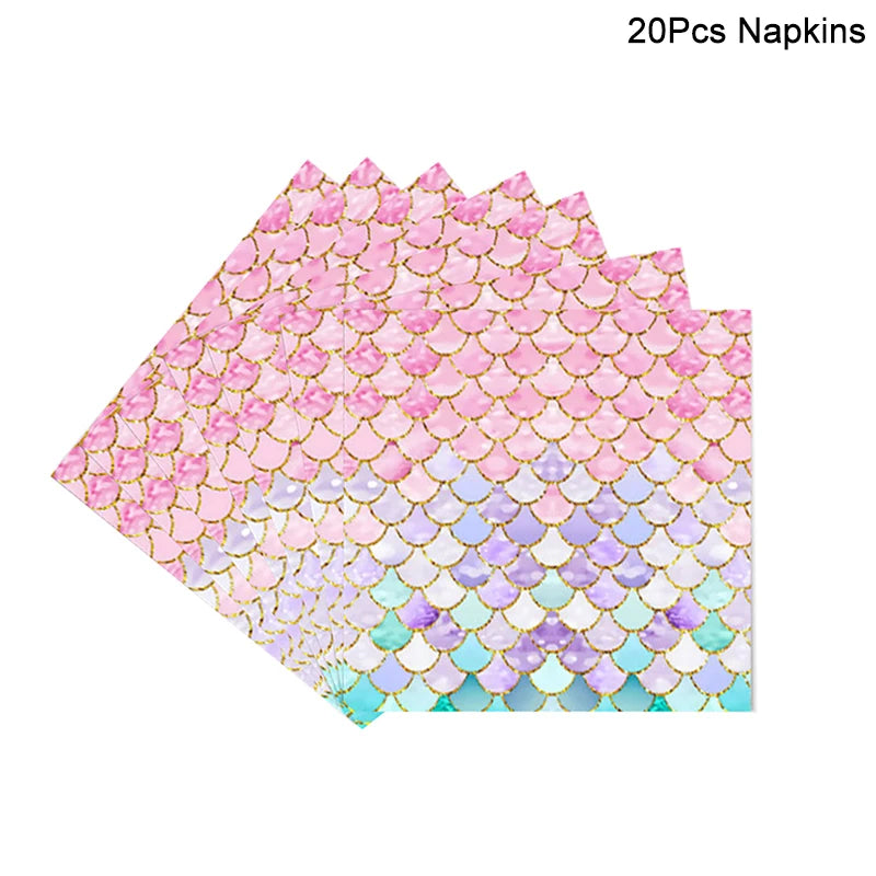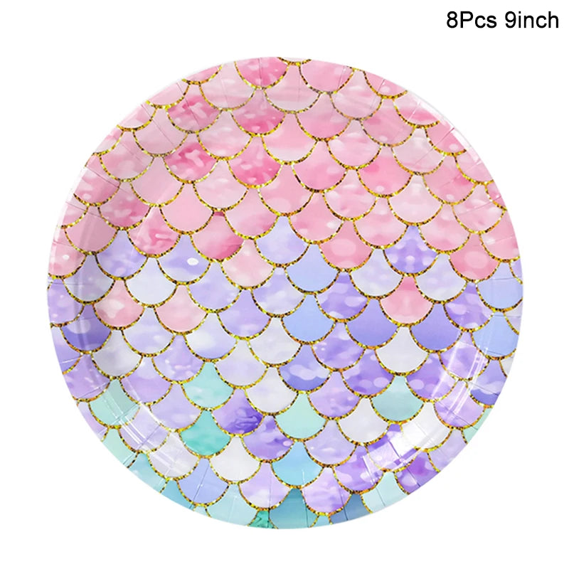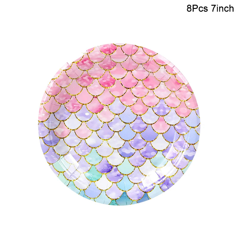 Kidslands® | Kit Vaisselle Jetable Sirène – Thème Océan Assiettes, Gobelets, Serviettes & Décorations