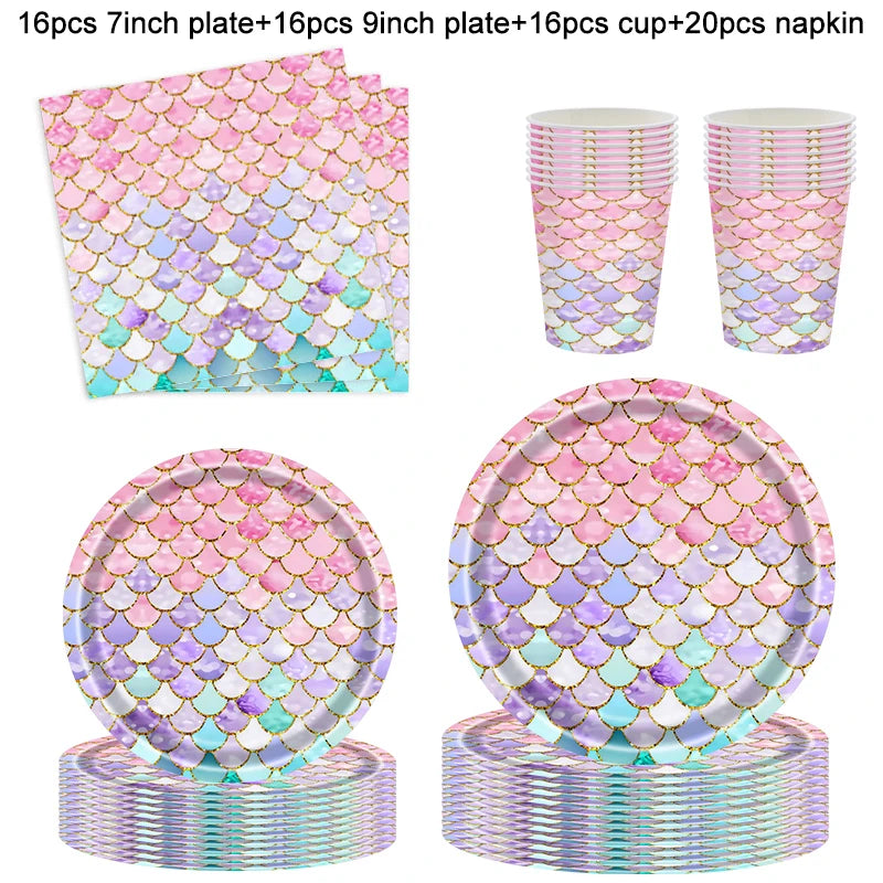 Plongez dans l’univers magique des sirènes avec le kit de vaisselle jetable Kidslands® ! Idéal pour les anniversaires, ce set complet transforme chaque table en un véritable royaume sous-marin féérique.