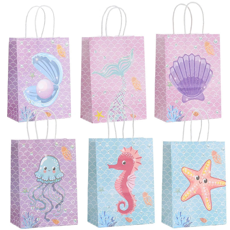 Kidslands® | Lot de 12 Sacs Cadeaux Thème Océan – Animaux Marins & Sirène - Anniversaires, Fêtes