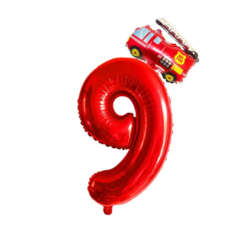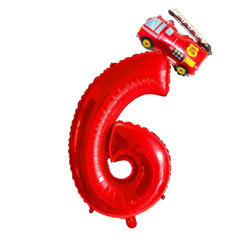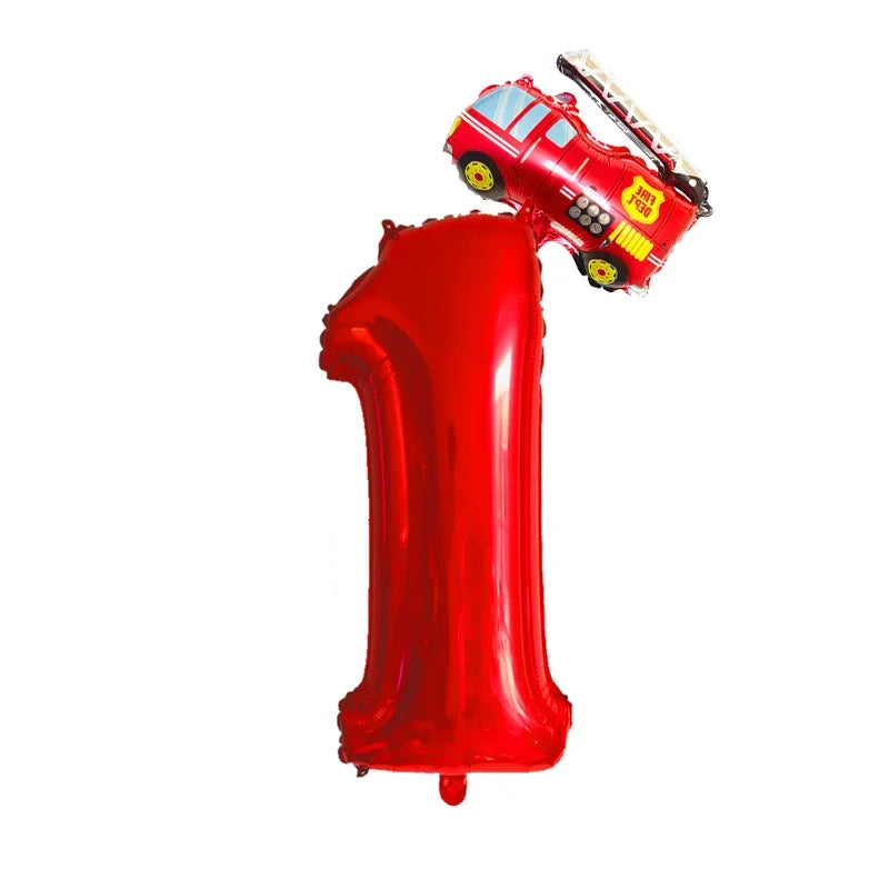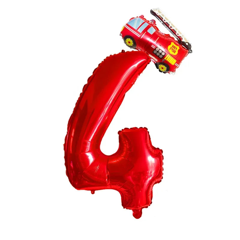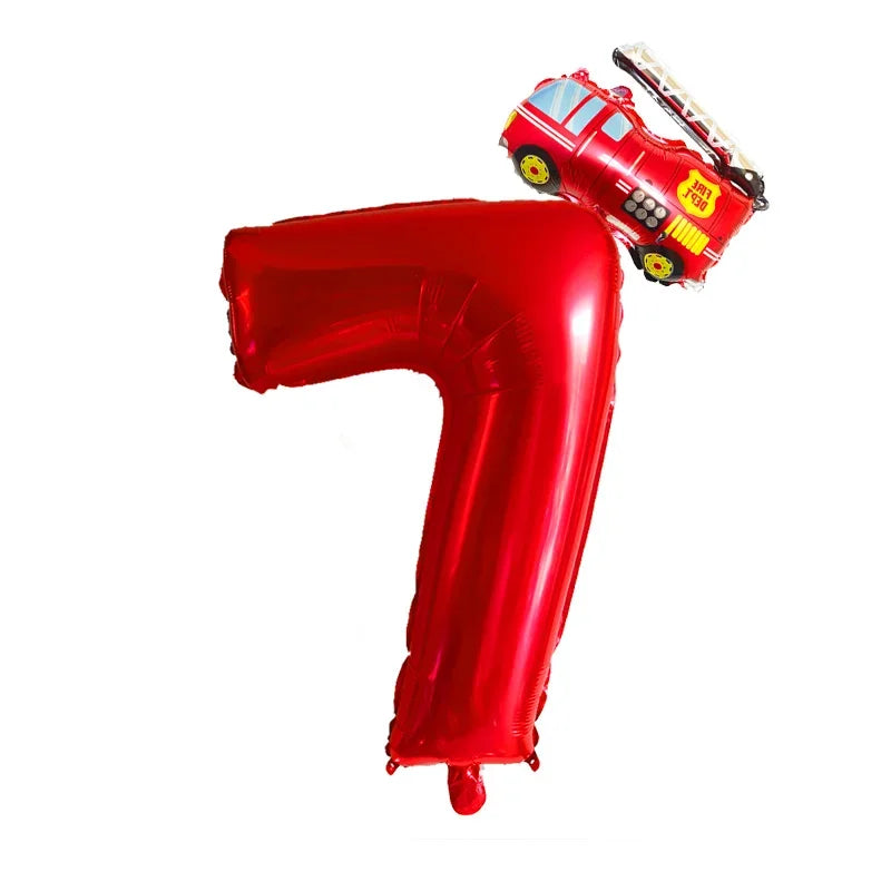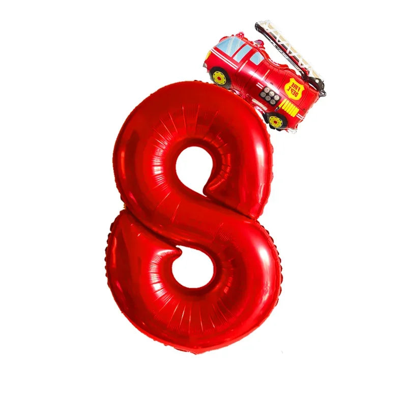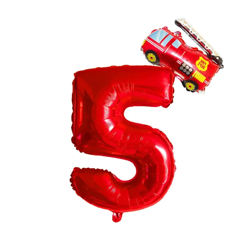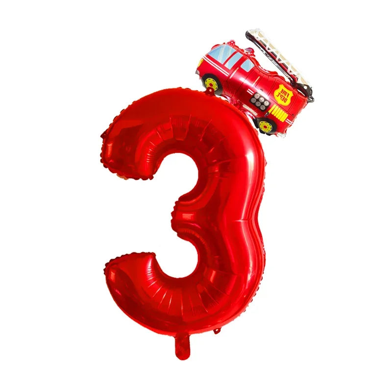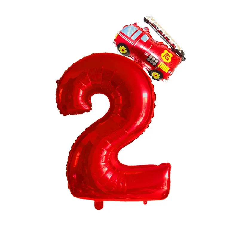 Kidslands® – Lot de 2 Ballons Chiffres + Camion de Pompier Pour Anniversaire Enfant, Fête Thème Pompiers