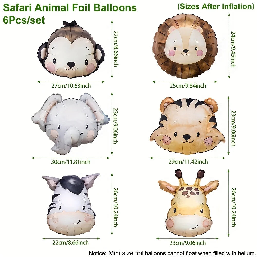 * 6 ballons aluminium durable - Réutilisable et résistant - Peut être gonflé à l’air ou à l’hélium - S'accorde avec nos autres articles safari/jungle