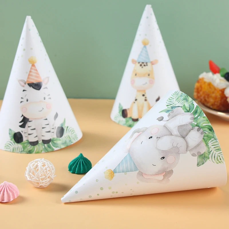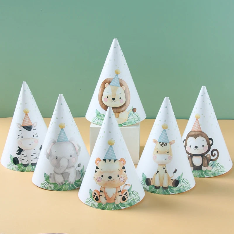 Kidslands® | Lot de 6 Chapeaux de Fête Animaux de la Jungle – Décoration Safari Anniversaire Enfant