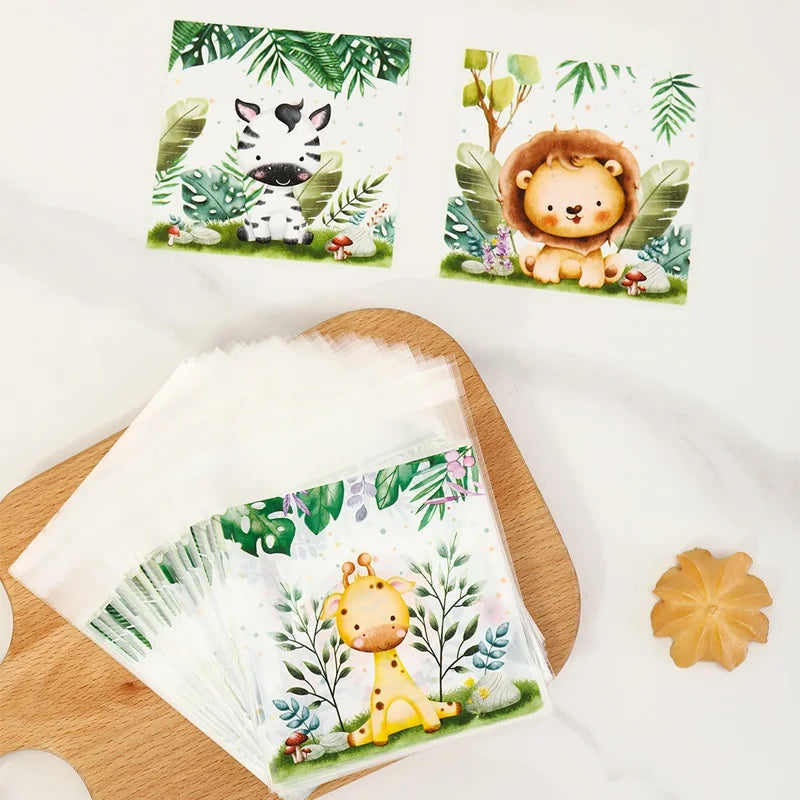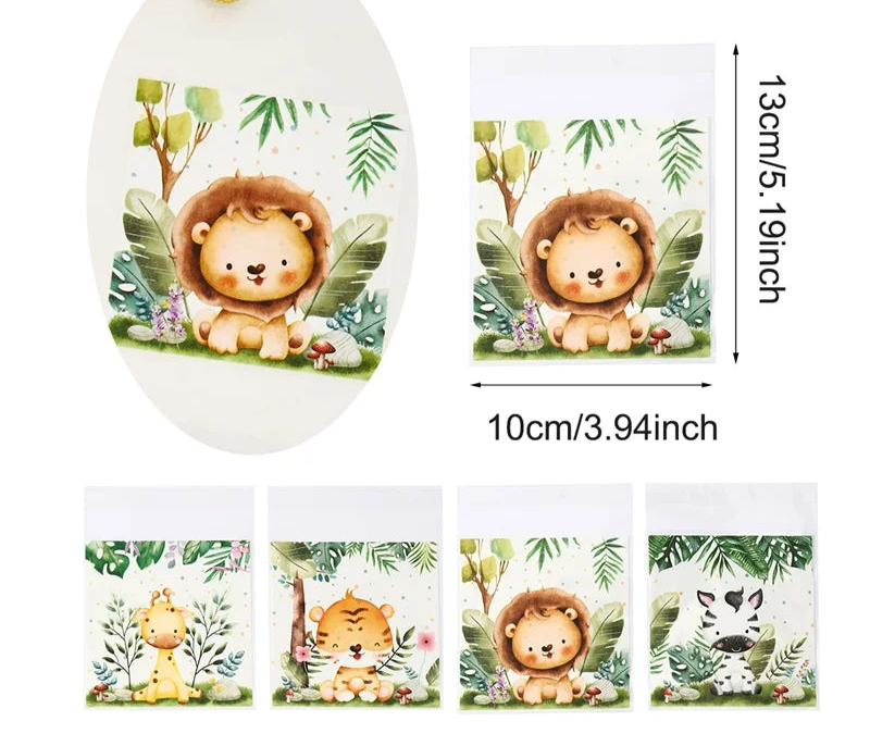 Kidslands® | Sachet Bonbon Auto-collant Thème Safari – Pochette Animaux Cadeau Anniversaire & Baby Shower