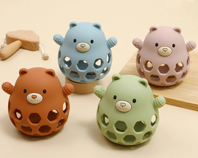 Soulagez les gencives douloureuses de votre bébé avec le jouet de dentition Kidslands en silicone souple, 100 % sans BPA. Conçu en forme d’ours, ce jouet offre une prise en main facile grâce à sa taille adaptée aux petites mains des nourrissons.