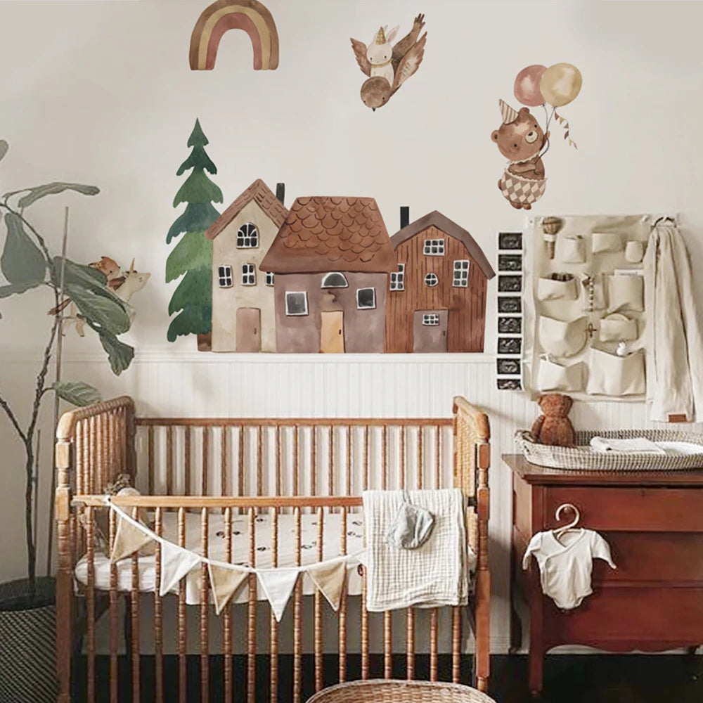 Kidslands® – Stickers Muraux Animaux & maisons | Décor Vinyle Autocollant pour Chambre Bébé & Enfant