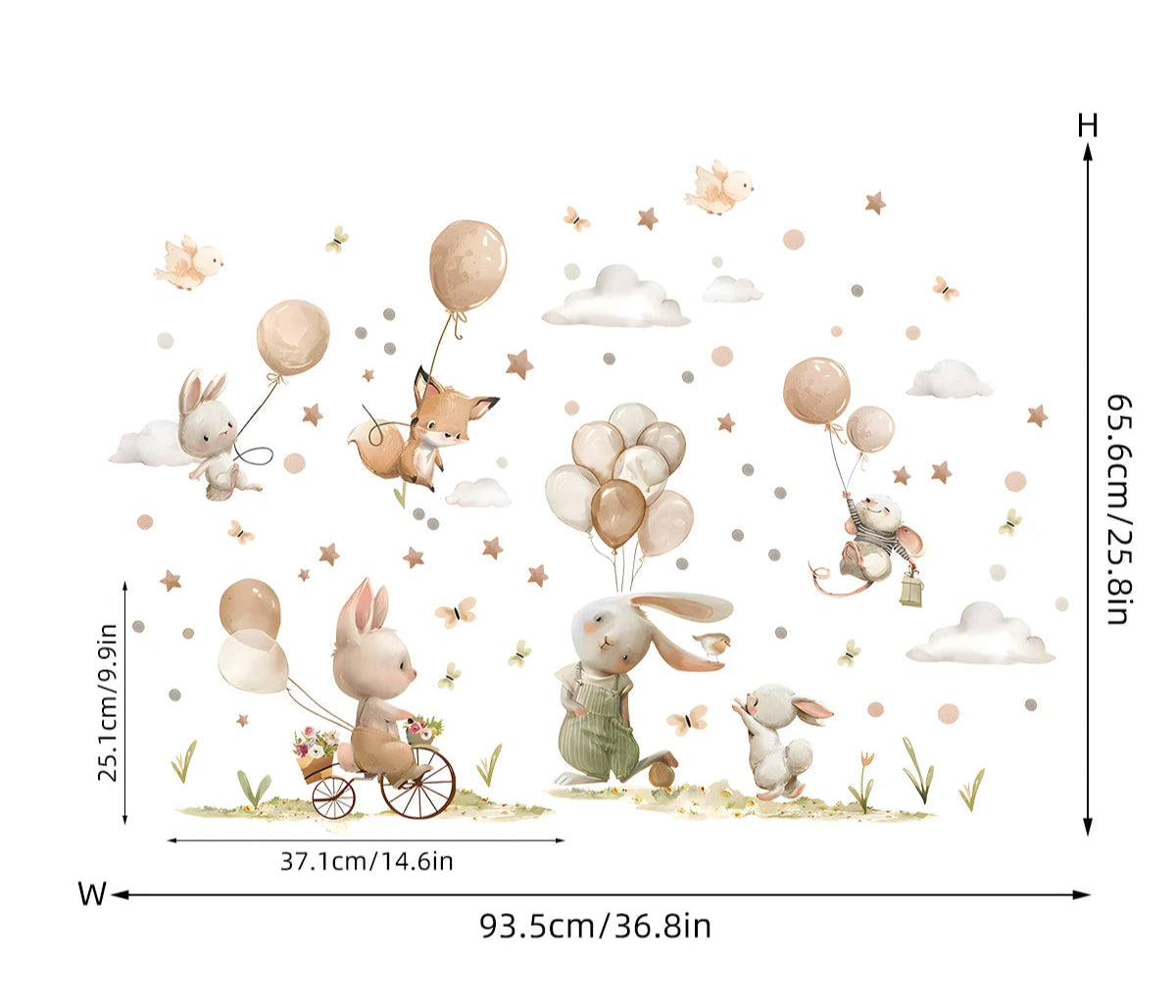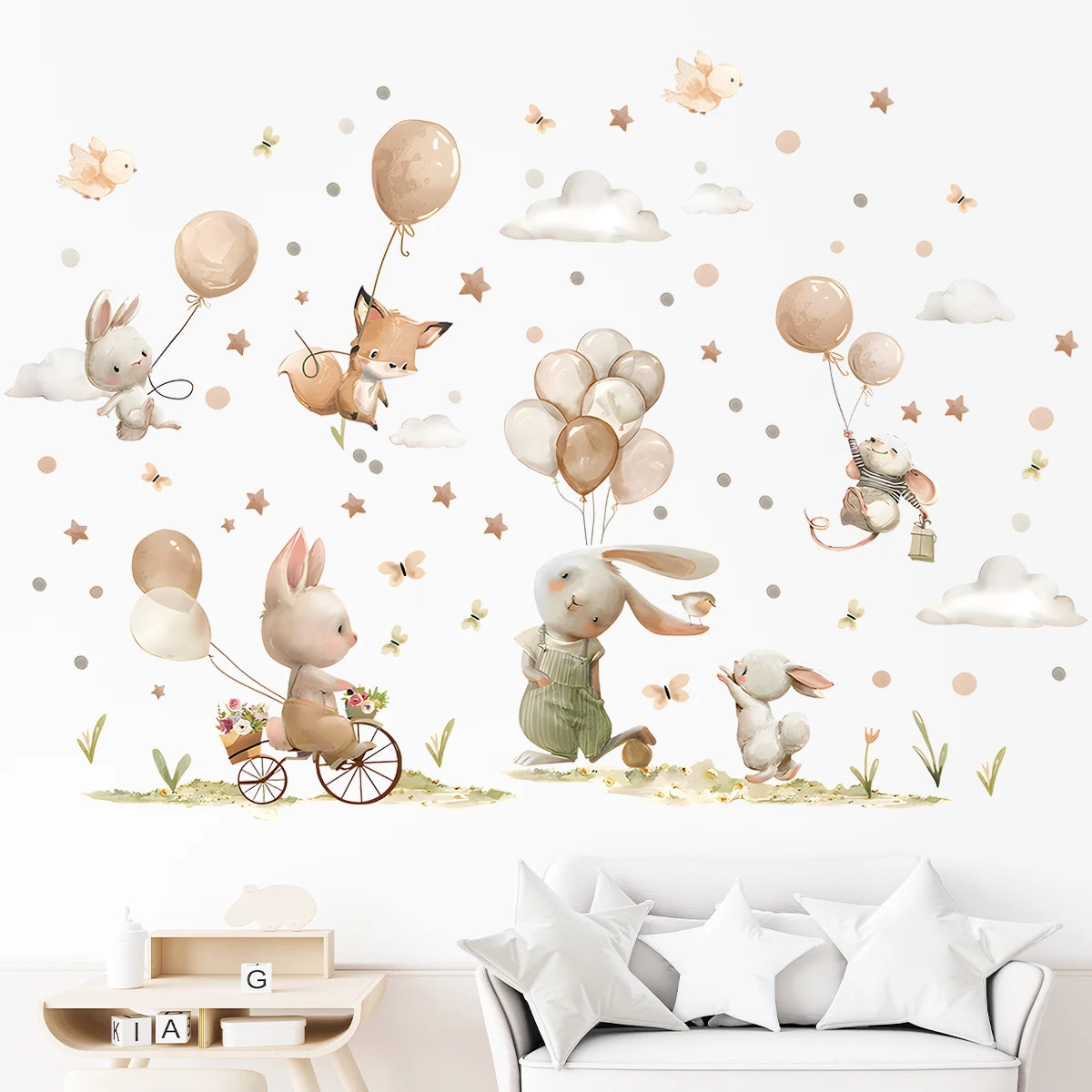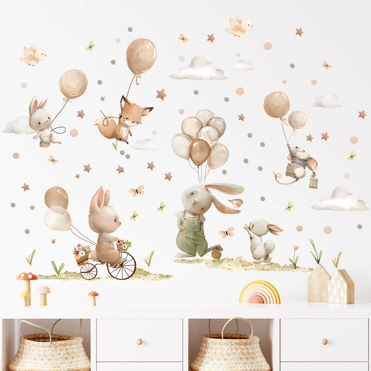 Kidslands® | Stickers Muraux Lapin Enfant Ballons – Décor Mural Autocollant Chambre Bébé