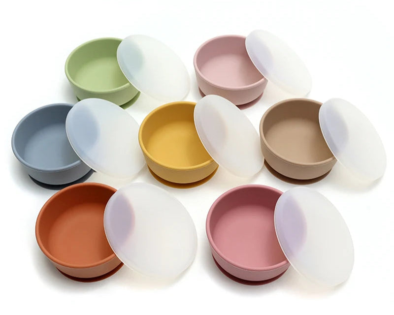 Kidslands® | Bol alimentaire d’apprentissage bébé en silicone avec ventouse & couvercle – Sans BPA